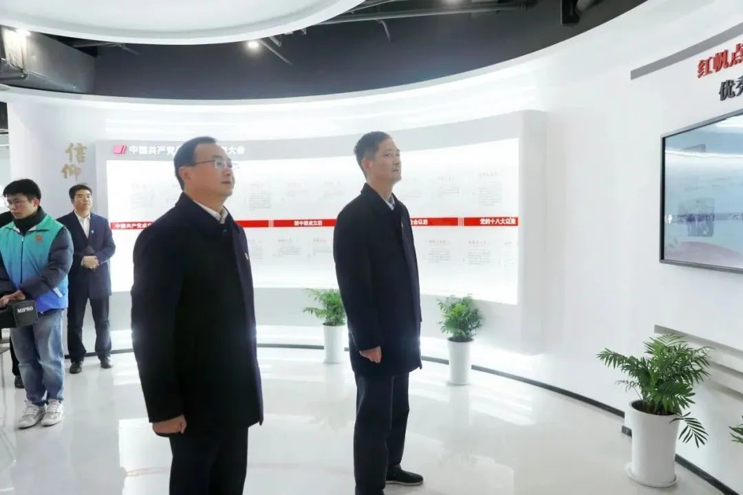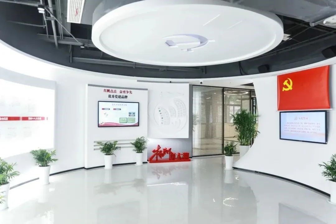 廳內(nèi)展示著黨的一大到二十大的光輝歷程和“紅帆點點 奮勇爭先”新區(qū)機關(guān)優(yōu)秀黨建品牌,滿足舉行入黨宣誓、黨員黨性教育、支部風(fēng)采展示等要求。