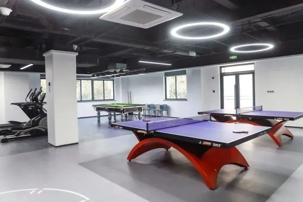 健身區(qū)分為有氧健身區(qū)和力量訓(xùn)練區(qū),有跑步機、啞鈴、臺球桌、乒乓球桌等,可以滿足絕大多數(shù)干部職工的運動需求。